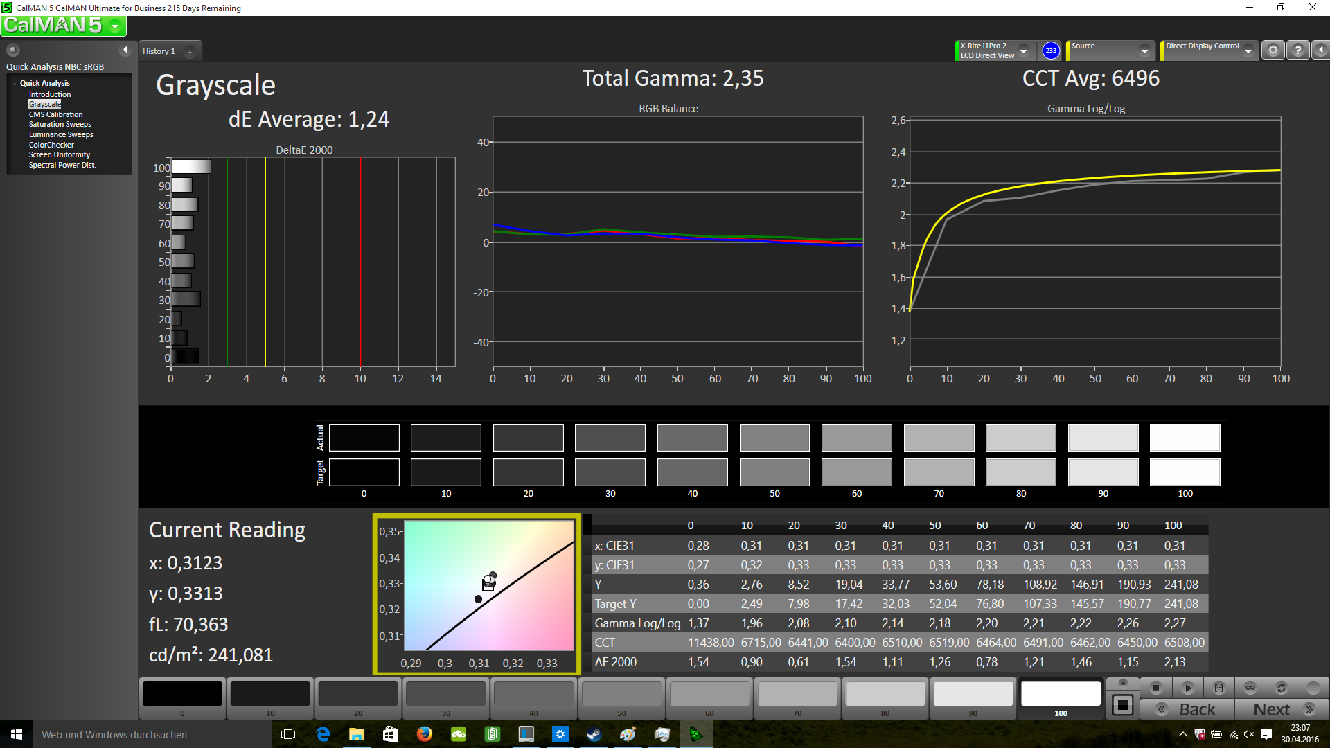 | Delta E Graustufen * | 5.25 | 3.18 39% | 4.11 22% | 10.22 -95% | 4.94 6% |