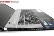 Dies bringt uns direkt zu den Kritikpunkten am Acer Aspire V3: Das Gehäuse geht für Preisregionen unter 1000 Euro in Ordnung. Mit den hochglänzenden Gehäuseparts wollen wir uns aus vielerlei Gründen nicht anfreunden, zum Teil bleibt dies aber auch Geschmackssache. Die Anschlussausstattung fällt zufriedenstellend aus, nicht so allerdings die Platzierung der Ports allersamt an den Seiten im vordersten Bereich.