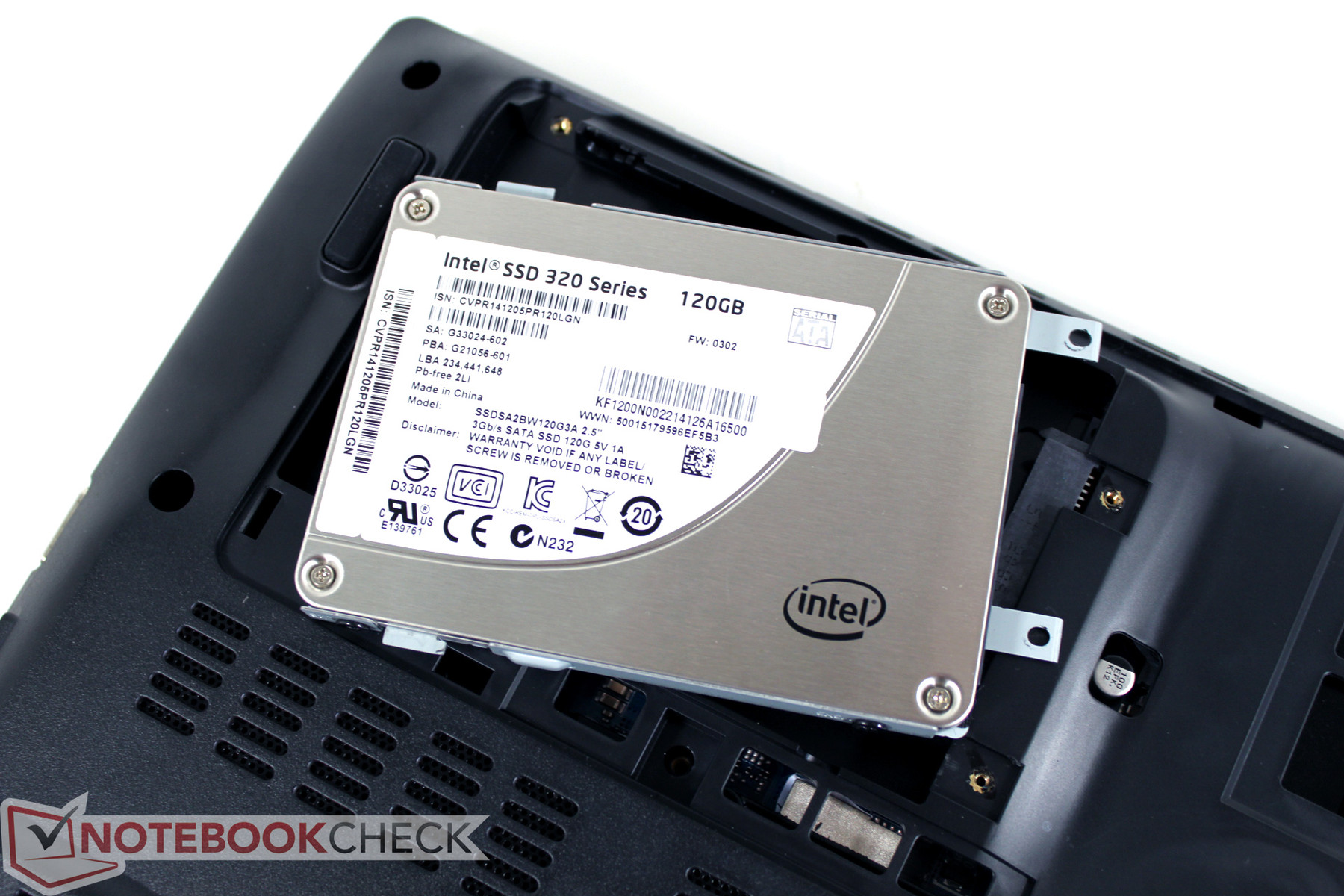 Das verbaute Intel Series 320 SSD (SSDSA2CW120G3) fasst 120 Gigabyte und kostet rund 150 Euro als Standalone-Variante in diversen Shops. Im CrystalDiskMark Benchmarktest schafft der Datenträger maximale Lese- bzw. Schreibgeschwindigkeiten von bis zu 230 bzw. 130 MB/s. Damit positioniert sich das SSD im Mittelfeld aktuell eingesetzter Solid State Drives.
