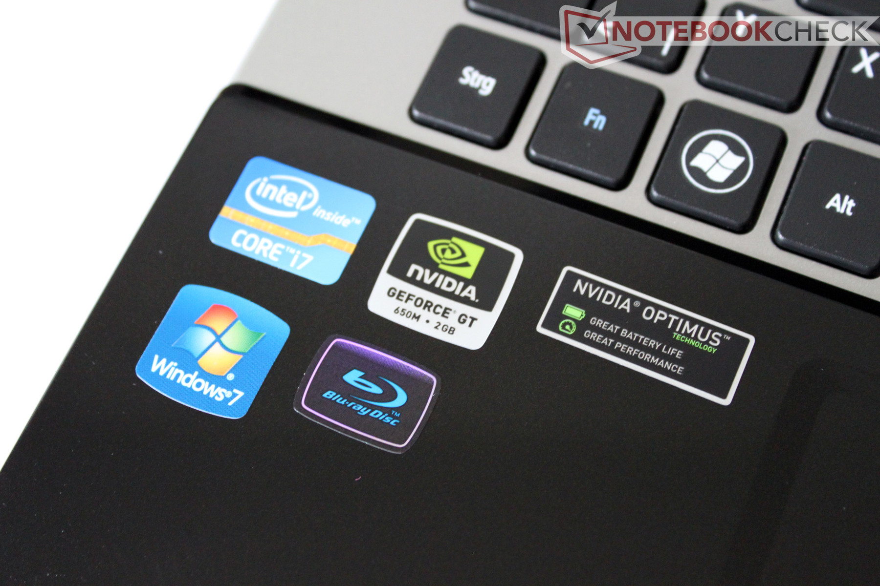 Ein Sticker am Gerät weist auf die Integration von Nvidia Optimus hin. Dies bedeutet, dass neben der dedizierten Nvidia Geforce GT 650M auch die in der CPU integrierte Intel HD Graphics 4000 genutzt werden kann. Der Wechsel der beiden Grafiklösungen funktioniert in der Regel vollautomatisch ohne notwendige Steuerung durch den Benutzer. Welche GPU aktiv ist, zeigt ein kleines Icon in der Taskleiste. Alternativ kann auch der Start einer Anwendung mit einer der beiden Grafiklösungen erzwungen werden (Tray Icon, "Optionen im Kontextmenü einblenden", Programmstart per Rechtsklick "Mit Grafikprozessor ausführen"). Dem User stehen damit alle Optionen offen, ähnlich einem aktuellen, ausgereiften Automatikgetriebe.