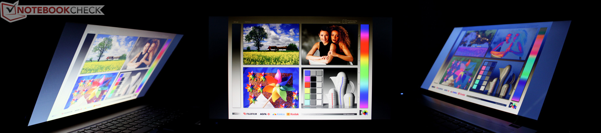 Die Blickwinkelstabilität fällt im horizontalen Bereich gut aus, wobei es hier bei flachen Blickwinkeln selbst Indoor schnell zu störenden Reflexionen kommen kann. Im vertikalen Bereich ist deutlich schneller mit Bildveränderungen zu kämpfen, die sich je nach Öffnungswinkel entweder als Invertieren bzw. als Überstrahlen des dargestellten Bildes äußern.