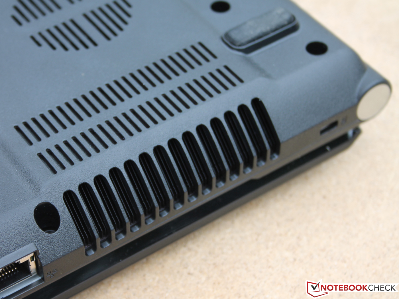 Die Wärmeentwicklung zeigt sich von ihrer besten Seite, denn nur an wenigen Punkten müssen wir Werte über 45 Grad Celsius messen. Dies ist während des zweistündigen Stresstests aus Prime95 und Furmark nur direkt am Luftauslass (Unterseite) und direkt am Rand des Gerätes (Oberseite über Heatpipe) der Fall. Wichtig: Der Stresstest ist keine Referenz für den Normalbetrieb. Wer Videos im Web schaut oder E-Mails schreibt, der erlebt nur handwarme Temperaturen von durchschnittlich um die 32 Grad (siehe Idle: ~30,2 Grad).