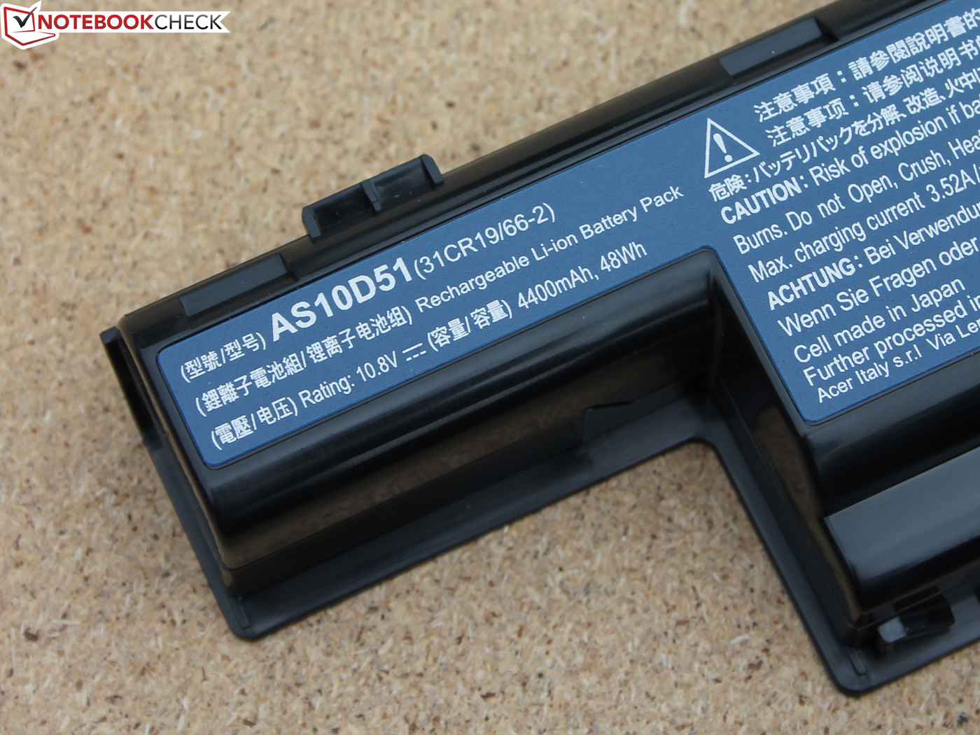 Wie viel Laufzeit können wir von einem 17-Zoll-DTR erwarten? Der 48-Wh-Lithium-Ion-Akkumulator hält das Aspire V3-772G knapp dreieinhalb Stunden auf den Beinen. Das ist unser Standard-WLAN-Surfen-Test, bei dem zirka 150 cd/m² eingestellt werden. So etwas können die 17-Zoll-Konkurrenten auch, etwa Schenkers XMG P703 / One K73-3N (jeweils 77 Wh) mit 3:18 bzw. 3:14 Stunden (gleicher Barebone/Akku).