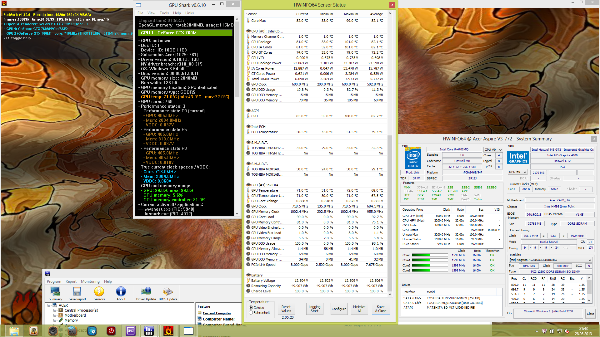 | Acer Aspire V3-772G-747A321 GeForce GTX 760M, 4702MQ, Toshiba HG5d THNSNH256GMCT | Samsung 770Z5E-S01DE Radeon HD 8870M, 3635QM, Seagate Momentus SpinPoint M8 ST1000LM024 HN-M101MBB | Schenker W503 GeForce GTX 765M, 4800MQ, Samsung SSD PM841 MZMTD128HAFV mSATA | Schenker XMG P502 GeForce GTX 670MX, 3610QM | One K73-3N GeForce GTX 770M, 4800MQ, Samsung 840 Series 500 GB (MZ-7TD500) | MSI GT70H-80M4811B GeForce GTX 780M, 4700MQ, SanDisk X100 128GB SD5SF2128G1014E | |