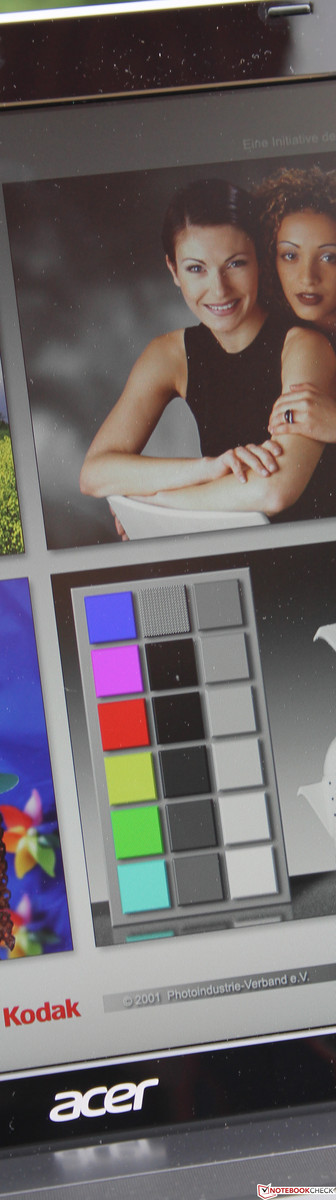 In der Gegenüberstellung sehen Sie am Beispiel des V3-571G den Unterschied zu IPS. Zu den befürchteten Farbinvertierungen bei abweichenden Blickwinkeln kommt es beim V3-571G nicht, wohl aber bei unserem Testgerät. Der perfekte Partner zum gemeinsamen Anschauen von Filmen ist das V3-772G daher nicht. Eine niedrig sitzende Person könnte Sichtprobleme haben.