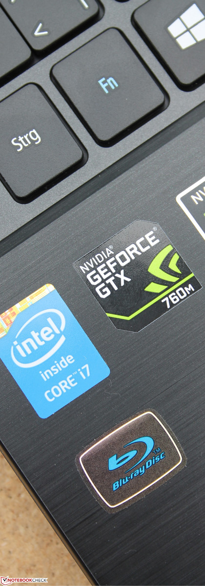 Dasselbe Chassis kann aber noch viel mehr. Lassen Sie es sich nach dem Ausklingen des Trommelwirbels auf der Zunge zergehen: Neben dem Haswell Quadcore Core i7 4702MQ (4x 2,2 GHz) sitzen vier Acht-Gigabyte-Module in den RAM-Slots (32.768 MB = 4x 8GB PC3-12800). Damit nicht genug: Die GeForce GT 650M (Maximalbestückung V3-771G) wird gegen eine nagelneue GeForce GTX 760M ausgetauscht. Spieler lässt das ebenso aufhorchen wie das matte, 1.920 x 1.080 Pixel fassende Panel. Dieses hatte bereits im Aspire V3-771G (FHD) für Furore im niedrigen Preispunkt gesorgt. Die Zeit schlechter Panels scheint abgelaufen.