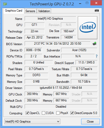 | Acer Aspire V5-131-10172G50akk HD Graphics (Ivy Bridge), 1017U, Seagate Momentus Thin ST500LT0 12-9WS142 | Acer Aspire V5-122P-61454G50NSS Radeon HD 8250, A6-1450, Western Digital Scorpio Blue WD5000LPVX | Lenovo ThinkPad Edge E130 NZUAXMB HD Graphics 4000, 3227U, Hitachi Travelstar Z7K500 HTS725050A7E630 | |