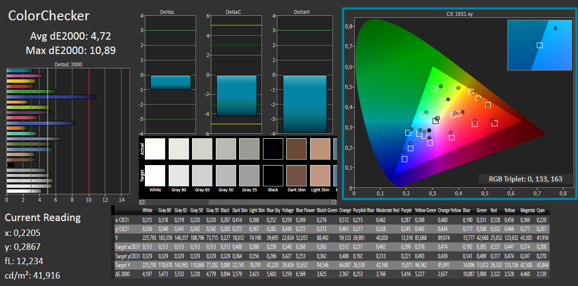 ΔE ColorChecker Calman: 4.72 | ∀{0.5-29.43 Ø4.79}