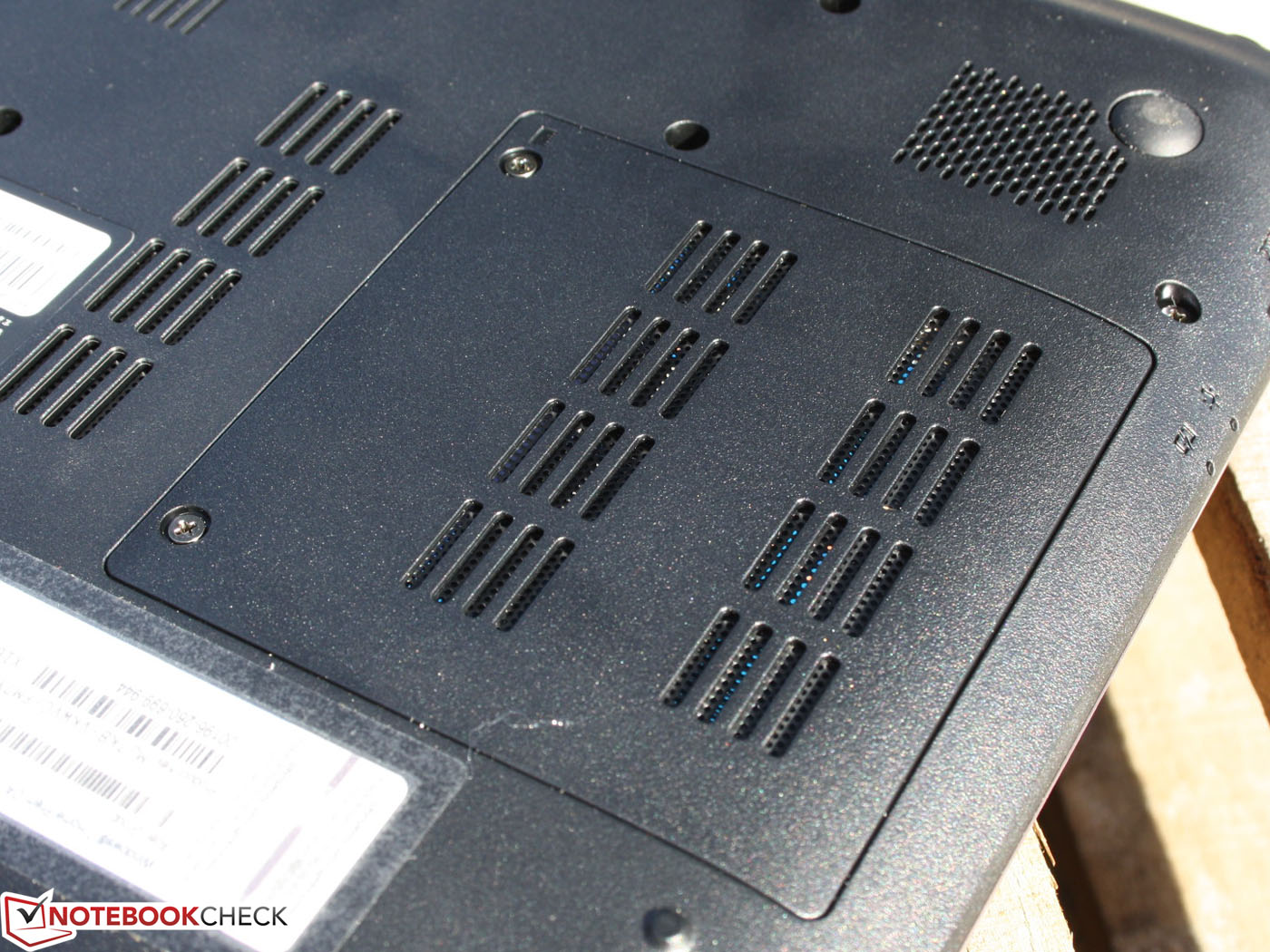 Das flache Gerät ist gleichmäßig 23 Millimeter dünn, wobei Acer nicht die zwei Millimeter der Gummifüße inkludiert hat. Die Unterseite aus Kunststoff ist vollkommen plan und nur durch eine kleine Klappe für die RAM-Module unterbrochen (zwei Sockel). Für den Tausch der Festplatte oder die Wartung des Lüfters müsste folglich die komplette Unterseite abgeschraubt werden. Zu Gunsten des Leihgebers haben wir das nicht getan, aber mit einem kleinen Kreuz-Schraubendreher und etwas Fingerspitzengefühl sollte das auch für den Laien machbar sein.