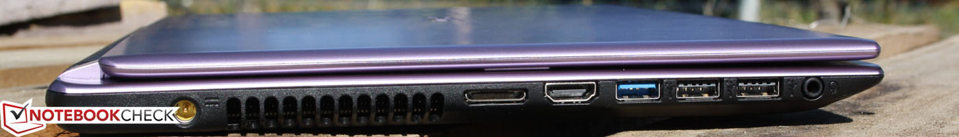Wie für günstige Notebooks typisch setzt Acer auf eine Minimalausrüstung, die der eines 15,6-Zollers entspricht. USB 3.0 ist damit quasi Pflicht, Bluetooth ebenso. Ethernet (RJ45) für Kabel-Netzwerk oder VGA für Beamer oder ältere externe TFTs werden mittels eines Spezial-Dongles angesprochen (liegt bei). Das Dongle ist proprietär, es gibt kein weiteres Zubehör für diesen Port. Uns gefällt die Lösung, denn diese Ports werden in der Praxis weitaus weniger oft benutzt als USB und HDMI.
