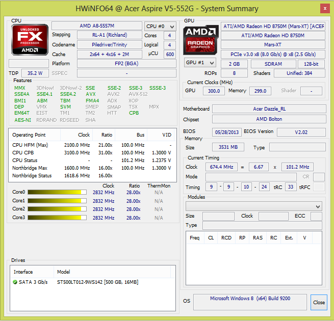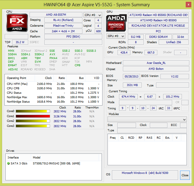 | Acer Aspire V5-552G Radeon HD 8550G + HD 8750M Dual Graphics, A8-5557M, Seagate Momentus Thin ST500LT0 12-9WS142 | Dell Latitude 13 3540 Radeon HD 8850M, 4200U, WDC Scorpio Blue WD7500BPVX-75JC3T0 | Acer Aspire E1-572G-54204G75Mnkk Radeon HD 8750M, 4200U, TOSHIBA MQ01ABD075 | Asus F550DP-XX022H Radeon HD 8550G + HD 8670M Dual Graphics, A8-5550M, Seagate Momentus SpinPoint M8 ST1000LM024 HN-M101MBB | no name , | |