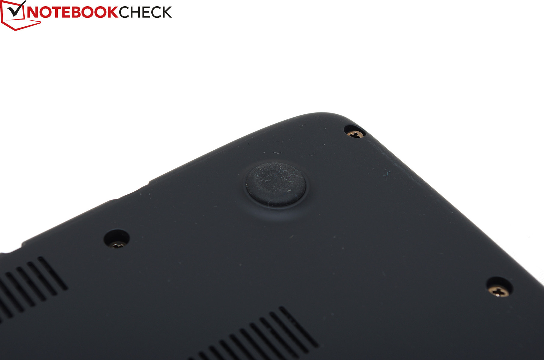 Die Steifheit des Gehäuses wirkt angesichts der schmalen Bauart angemessen. Legt man die Hand an einem äußeren Punkt des Gehäuses ab, biegt es sich sehr gering durch. Direkt in der Mitte, auf der Höhe des Touchpads, neigt es sich hingegen um einige Millimeter nach unten. Bei geschlossenem Gerät ist eine ausreichende Stabilität gewährleistet. Die Wartung ist, wie von anderen Ultrabooks und schlanken Notebooks bekannt, nicht über eine spezielle Klappe möglich. Vielmehr muss hierfür der gesamte Unterboden der Baseunit entfernt werden, was aufgrund normaler Kreuzschrauben keine Schwierigkeit darstellt. Anders als beim Mittelklasse Aspire V5-573G ist die Unterseite des Aspire V7-582PG mit einer feinen Gummierung überzogen. Ein gravierender Mangel, den wir an unserem Testexemplar feststellen mussten, ist ein verzogenes Display. Der Bildschirm hat eine stark auffallende Schrägstellung. Woran dies liegt und ob auch andere Modelle betroffen sind, konnten wir nicht herausfinden.