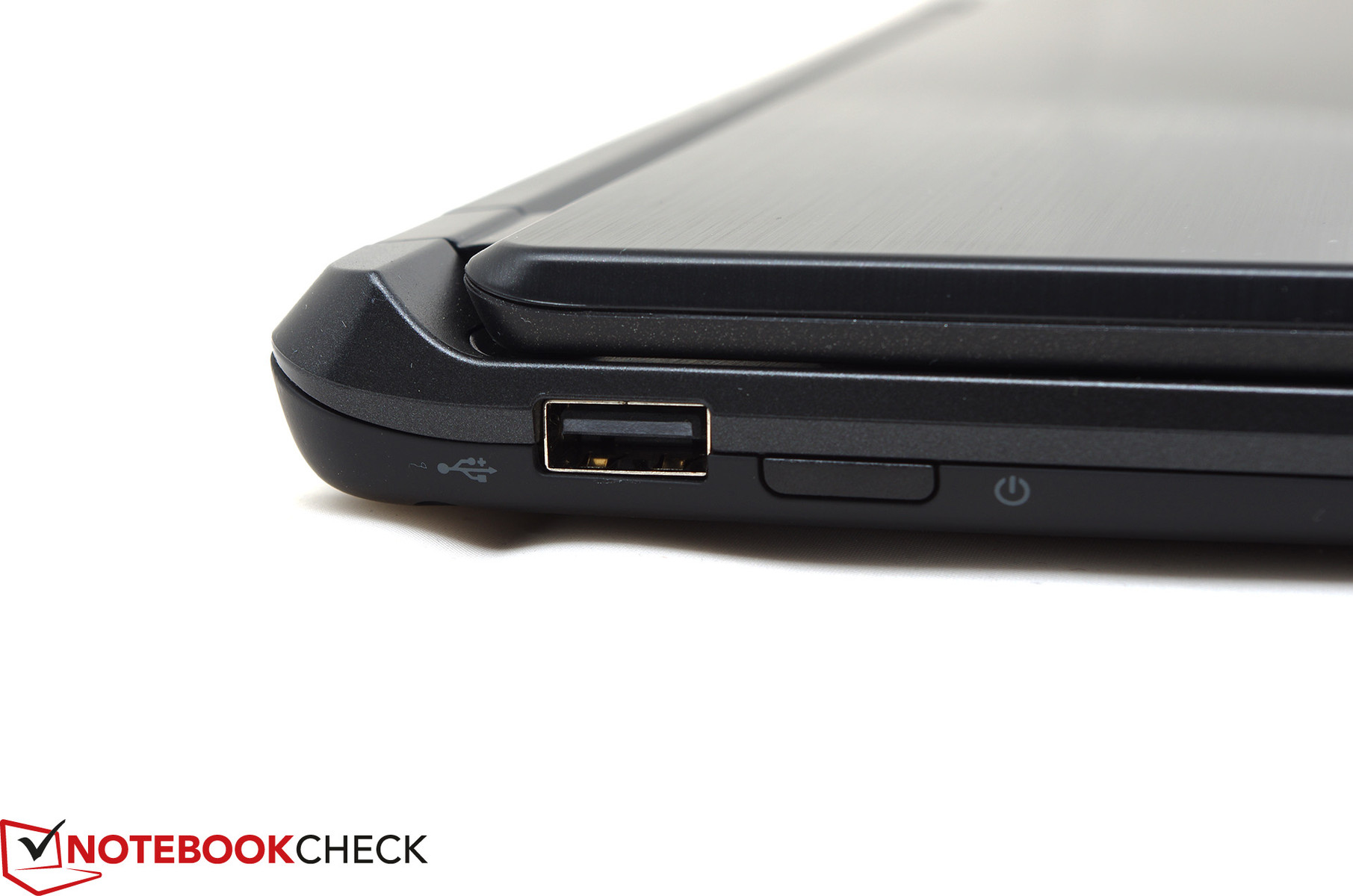 Die Anschlüsse des Aspire V7-582PG liegen im Klassendurchschnitt und fallen mit 2x USB 2.0 und 1x USB 3.0 moderat aus. Die Anschlussverteilung erstreckt sich über drei Seiten des Notebooks. Ein USB-2.0-Port befindet sich auf der rechten hinteren Seite. Einen weiteren USB-2.0-Anschluss erreicht man über die linke hintere Seite. Der schnelle USB-3.0-Port befindet sich auf der Rückseite, auf der wir zusätzlich einen HDMI-Anschluss und einen Ethernet-Port entdecken. Zusätzlich integriert Acer, wie auch beim Aspire V5-573G, einen Acer Converter-Port, der aufgrund seiner Eigenschaften an den Lightning-Port erinnert. Der Nutzer hat die Möglichkeit, eine enorme Bandbreite an Peripherie an diesem Anschluss anzubringen. Wegen der schmalen Bauweise verfügt die V-Serie über keinerlei optische Laufwerke. Diese können jedoch problemlos über den USB-Anschluss angeschlossen werden.