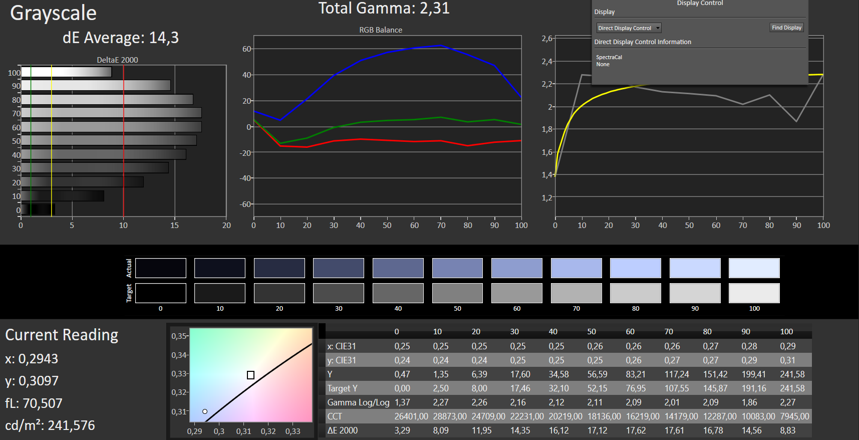 ΔE Greyscale Calman: 14.3 | ∀{0.09-98 Ø5}