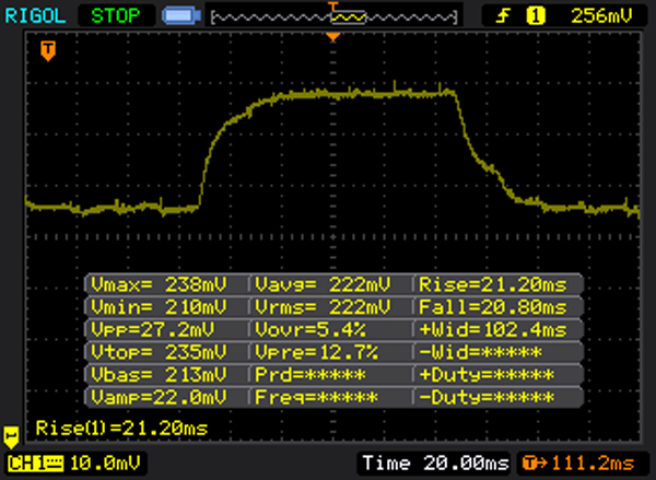| 41 ms ... steigend ↗ und fallend ↘ kombiniert | ↗ 21 ms steigend | |