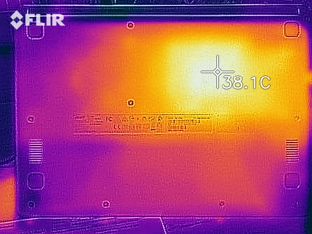Lautstärke gibt es keine, das Gerät hat keinen Lüfter. Dies ist auch bei den Konkurrenten der Fall. Die Temperatur bleibt dennoch gering, wir messen unter Belastung maximal 36 Grad auf der Tastatur.
