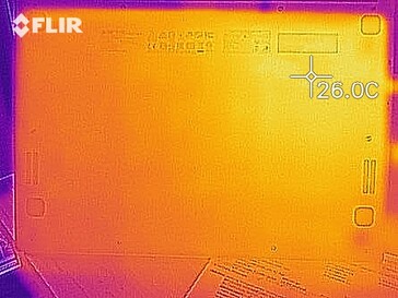 (+) Die Handballen und der Touchpad-Bereich sind mit gemessenen 26.3 °C kühler als die typische Hauttemperatur und fühlen sich dadurch kühl an.