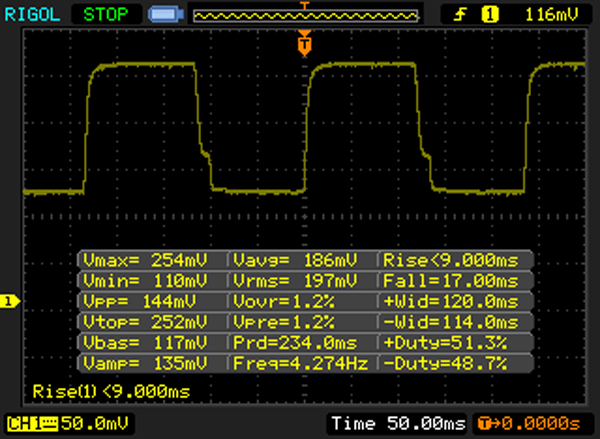 Das Display flackert mit 990 Hz (im schlimmsten Fall, eventuell durch Pulsweitenmodulation PWM) bei einer eingestellten Helligkeit von 90 % und darunter. Darüber sollte es zu keinem Flackern kommen. Die Frequenz von 990 Hz ist sehr hoch und sollte daher auch bei empfindlichen Personen zu keinen Problemen führen. Im Vergleich: 53 % aller getesteten Geräte nutzten kein PWM um die Helligkeit zu reduzieren. Wenn PWM eingesetzt wurde, dann bei einer Frequenz von durchschnittlich 8142 (Minimum 5, Maximum 343500) Hz. | |||