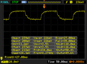 | 62 ms ... steigend ↗ und fallend ↘ kombiniert | ↗ 27 ms steigend | |