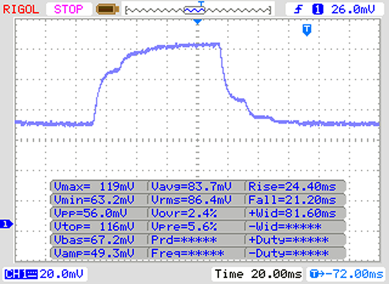 | 45 ms ... steigend ↗ und fallend ↘ kombiniert | ↗ 24 ms steigend | |