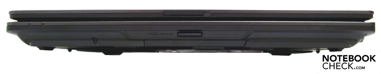 Bis auf den 5-in-1 (SD, MMC, MS, MS PRO und xD-Picture Card) Kartenleser, der sich an der Vorderfront befindet, sind die Anschlüsse auf die beiden Seitenflächen der Baseunit aufgeteilt. Links befinden sich nebst dem bereits erwähnten Portreplikator die Anschlussbuchse für die Netzversorgung, ein RJ-45 10/100/1000 LAN-Anschluss, der analoge VGA-Anschluss, eine HDMI Schnittstelle, zwei USB-2.0 Anschlüsse, die Buchsen für Kopfhörer, Mikrofon und Audioeingabe und der Einschub für PCMCIA-Karten. An der rechten Seite finden wir neben Kensington-Security-Slot und einer RJ-11 Modemschnittstelle das DVD Laufwerk, weitere zwei USB-2.0 Anschlüsse und der Steckplatz für eine ExpressCard/34.
