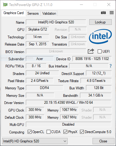 | iGPU | Intel HD Graphics 520 | Intel HD Graphics 515 | |