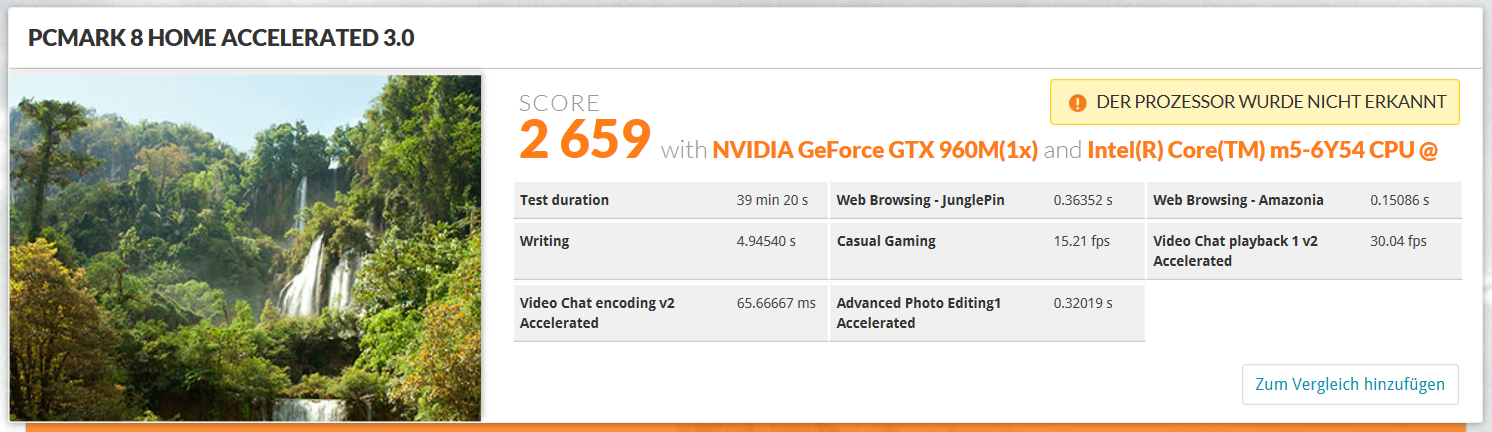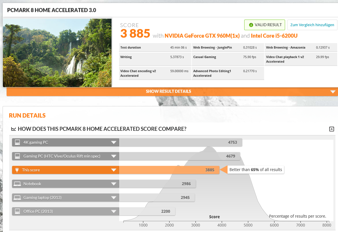 | PCMark 8 Home Score Accelerated v2 | 3885 Punkte | |