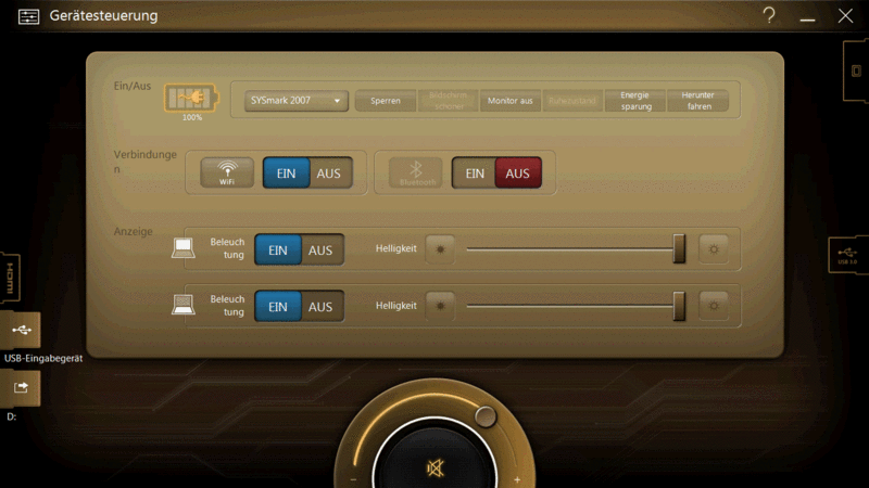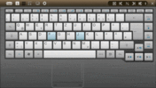 Aufgebaut wie eine Laptop-Arbeitsumgebung bietet die virtuelle Tastatur eine Handauflage, ein Touchpad mit Maustasten, blaue Funktionstasten sowie ein paar Tasten für die Mediensteuerung. Der Hersteller hat die Abmessungen und die Funktionen einer konventionellen Laptop-Eingabe 1:1 virtuell nachgebaut. Vorteil der Software-Lösung: Optik, Tasten-Abstand oder Helligkeit können verändert werden.