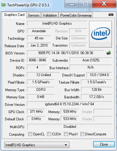 Der 14-Zoller ist mit Core i5-480M (2 x 2.66 GHz, 3MB L2 Cache) ausgerüstet. Der Kern mit 35 Watt TDP taktet mit Turbo-Boost zwischen 2.66 (Standard) und 2.93 GHz. Per Hyper Threading können vier Threads zur gleichen Zeit rechnen, was zeitgleich ausgeführten Anwendungen hilft. Der Speichercontroller in der CPU kann bis zu acht Gigabyte DDR3-RAM adressieren. 4.096 MB DDR3 Arbeitsspeicher sind im Iconia verbaut (zwei RAM-Module). Der Intel Graphics Media Accelerator HD im Prozessor ist aktiv und die einzige Grafik an Bord.