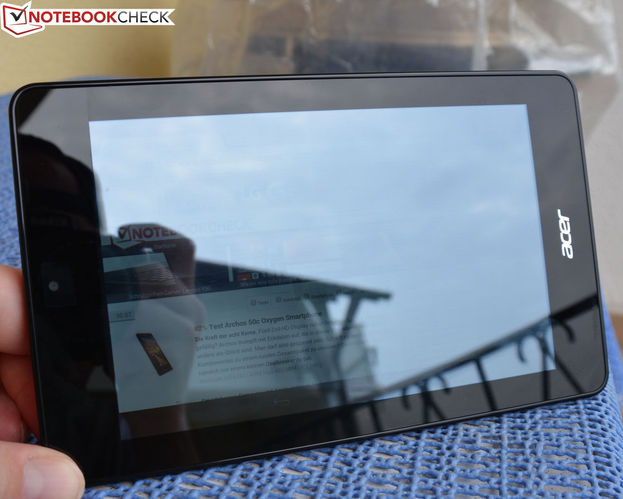 Das 7-Zoll-Display des Acer Iconia One 7 B1-730 löst mit 1.280 x 800 Bildpunkten in HD auf. Dies entspricht dem Genrestandard, erst wesentlich teurere Tablets bieten bei dieser Displaygröße eine FullHD-Auflösung.
