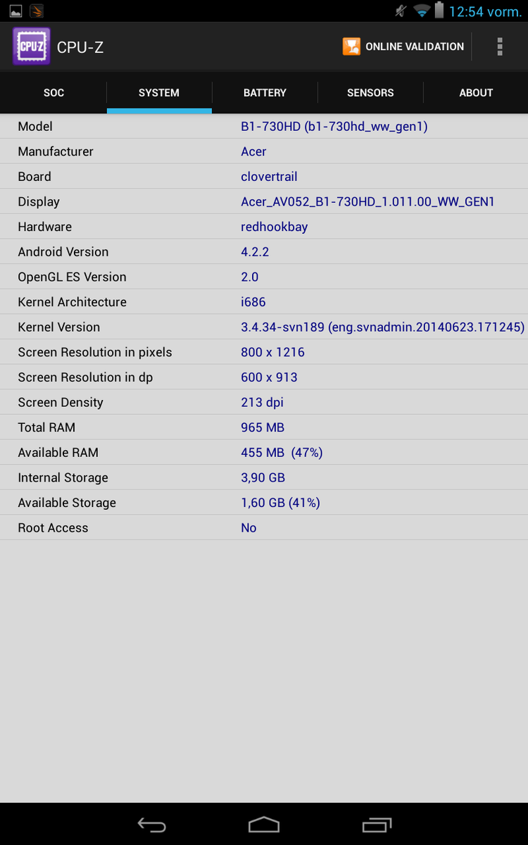 Acer setzt im Iconia One 7 B1-730 auf einen Doppelkern-SoC mit 1,6 GHz Taktfrequenz, den Intel Atom Z2560. Grafische Aufgaben übernimmt die integrierte PowerVR SGX544 Grafikkarte. Beiden steht ein Arbeitsspeicher von 1 GB zur Verfügung. Der interne Flashspeicher mit 8 GB Speicherplatz kann via microSD-Karte um bis zu 64 GB erweitert werden. Unverständlich: Apps können jedoch nicht auf die microSD-Karte ausgelagert werden. Bei einem internen Nettospeicher von knapp 3,3 GB ein Kardinalsfehler. Alternativ soll auch ein Gerät mit 16 GB Flashspeicher folgen.
