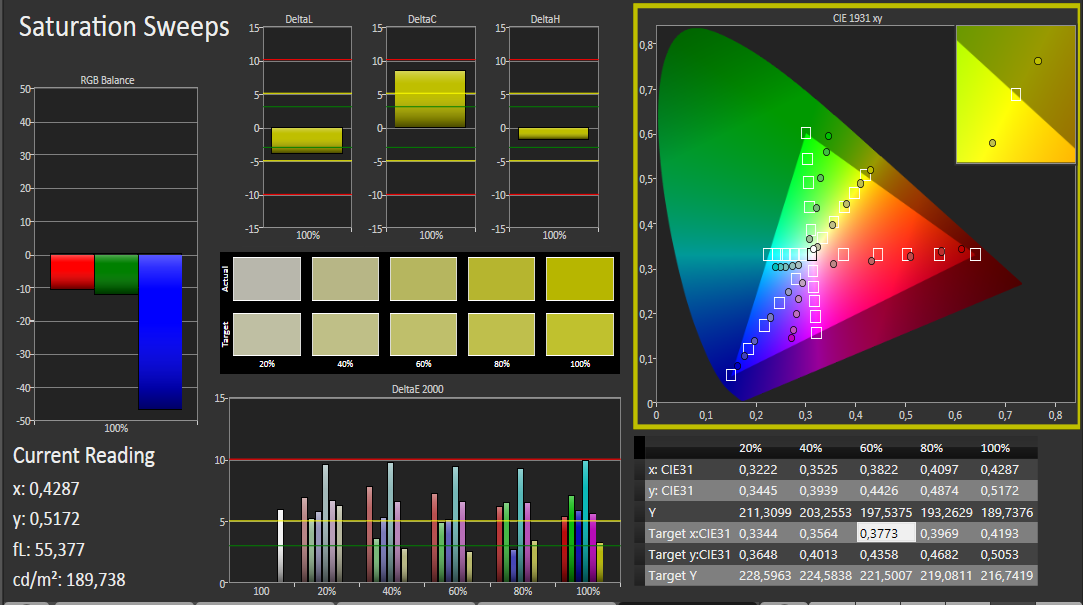 ΔE Greyscale Calman: 6.96 | ∀{0.09-98 Ø5}