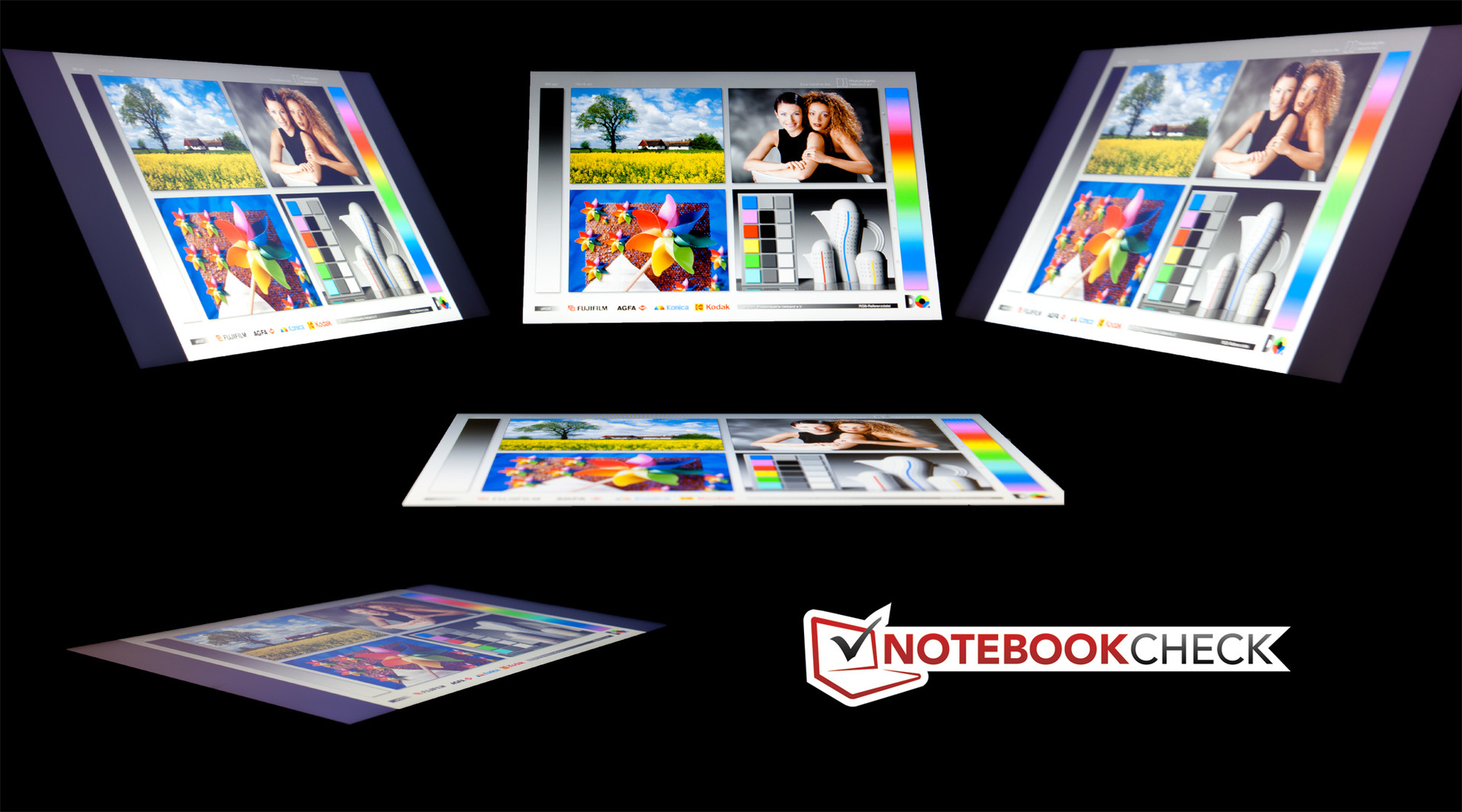 Die Blickwinkelstabilität des IPS-Screens ist tadellos. Der von Acer beworbene Betrachtungswinkel in Höhe von 178 Grad wird problemlos erreicht. Farbabweichungen sind selbst bei Blickwinkelneigungen von mehr als 45 Grad mit dem Auge kaum auszumachen. In heller Umgebung stört in solchen Fällen lediglich das spiegelnde Display. Eine Nutzung des Gerätes mit mehreren Personen stellt kein Problem dar.