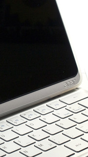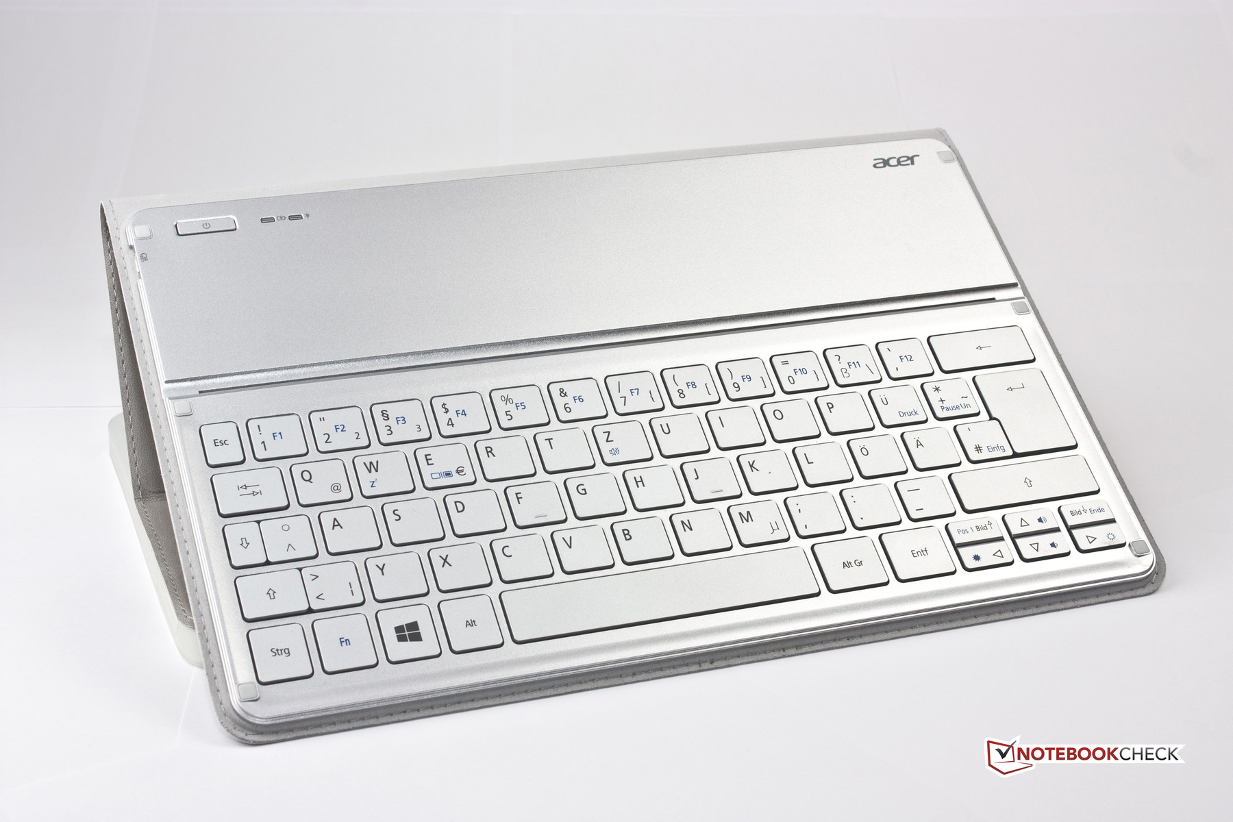 Die im Smart-Cover eingefasste mechanische QWERTZ Tastatur wird mittels Bluetooth mit dem Tablet verbunden und verfügt über 68 Tasten. Die Standardtasten haben eine angenehme Kantenlänge von 15 mm. Die Tastatur ist in einem ähnlichen Silberton gehalten wie das Gehäuse des Iconia W700 und wirkt ein wenig billig. Doch der Eindruck täuscht. Zwar macht sie in den Händen keinen sehr stabilen Eindruck, doch ist sie haptisch angenehm. Die Tasten sind leichtgängig und reagieren prompt auf die Eingabe des Benutzers. Der Hubweg der Tasten ist angenehm kurz, sie machen ein hörbares Klickgeräusch und verfügen über keinerlei Hintergrundbeleuchtung.