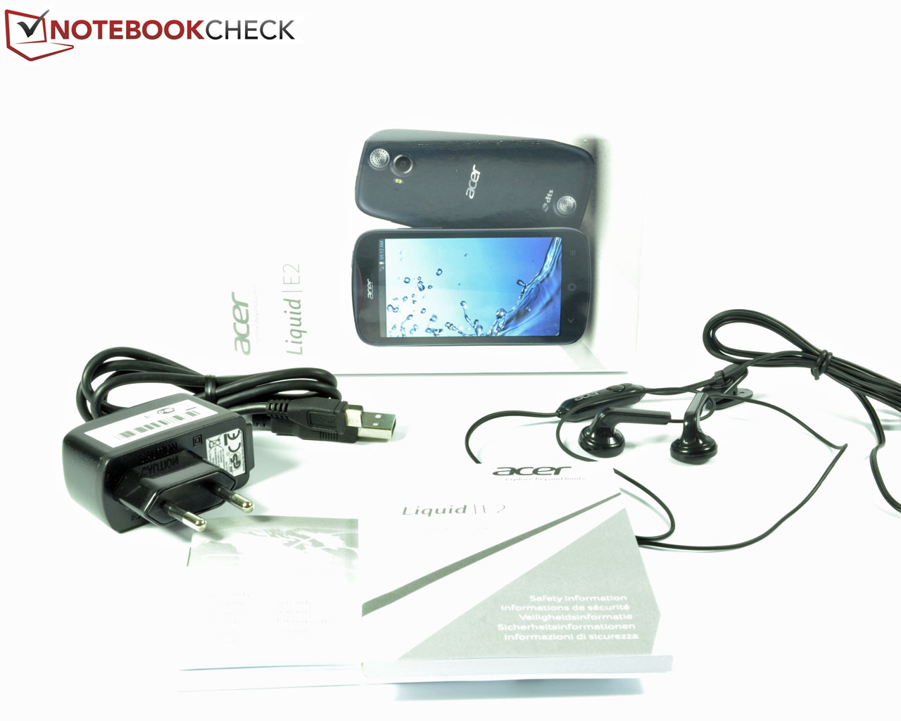 Neben dem Smartphone selbst und dem 2.000-mAh-Akku liegen dem Liquid E2 Duo diverse Kurzanleitungen, ein Standard-Stereo-Headset sowie ein kompaktes 5V/1A-Netzteil mit einem 75-cm-USB-Kabel bei. Bislang ist auf der Produkt-Webseite des Herstellers kein optional erhältliches Zubehör gelistet.