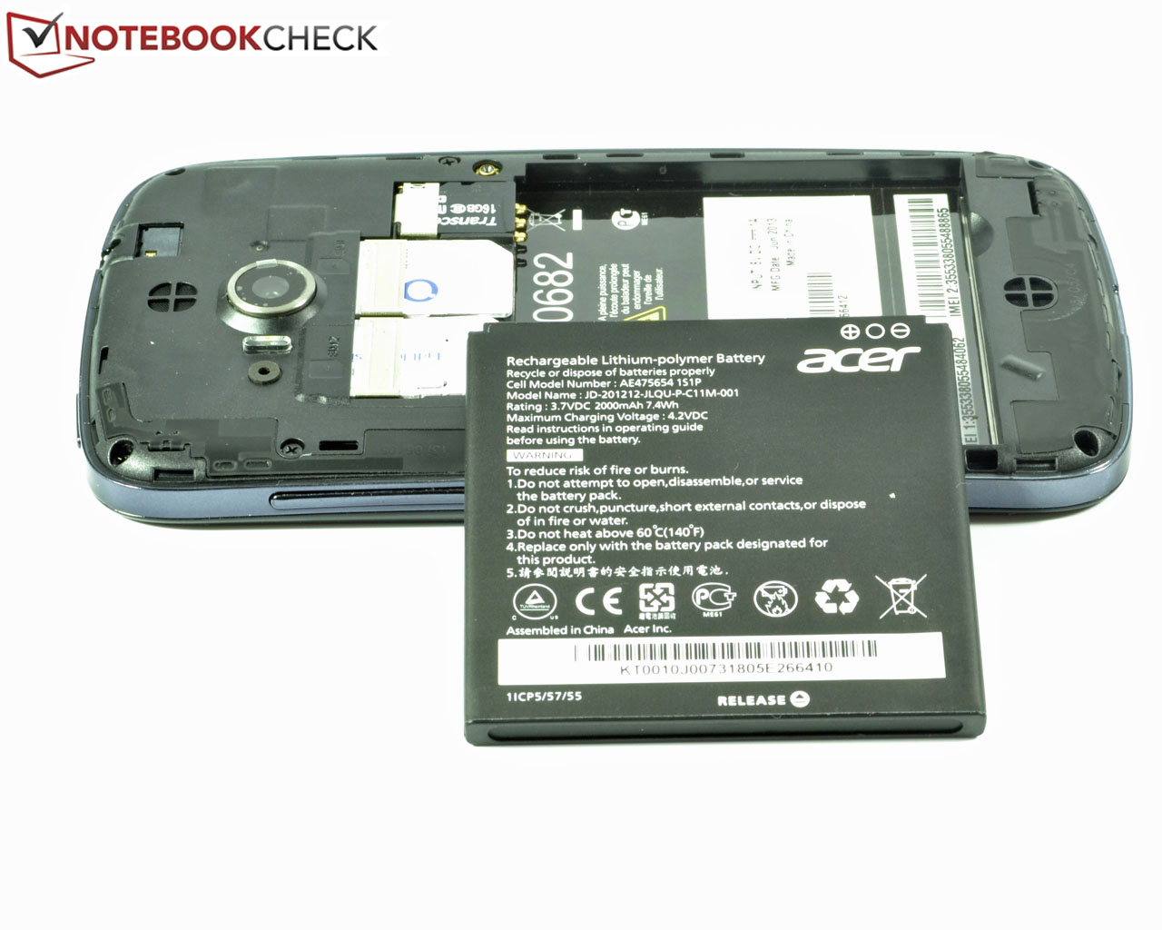 Dank der niedrigen Stromverbrauchswerte und einem 7,4 Wh starken Akku mit 2.000 mAh erreicht das Acer Liquid E2 Duo ansprechende Akkulaufzeiten.