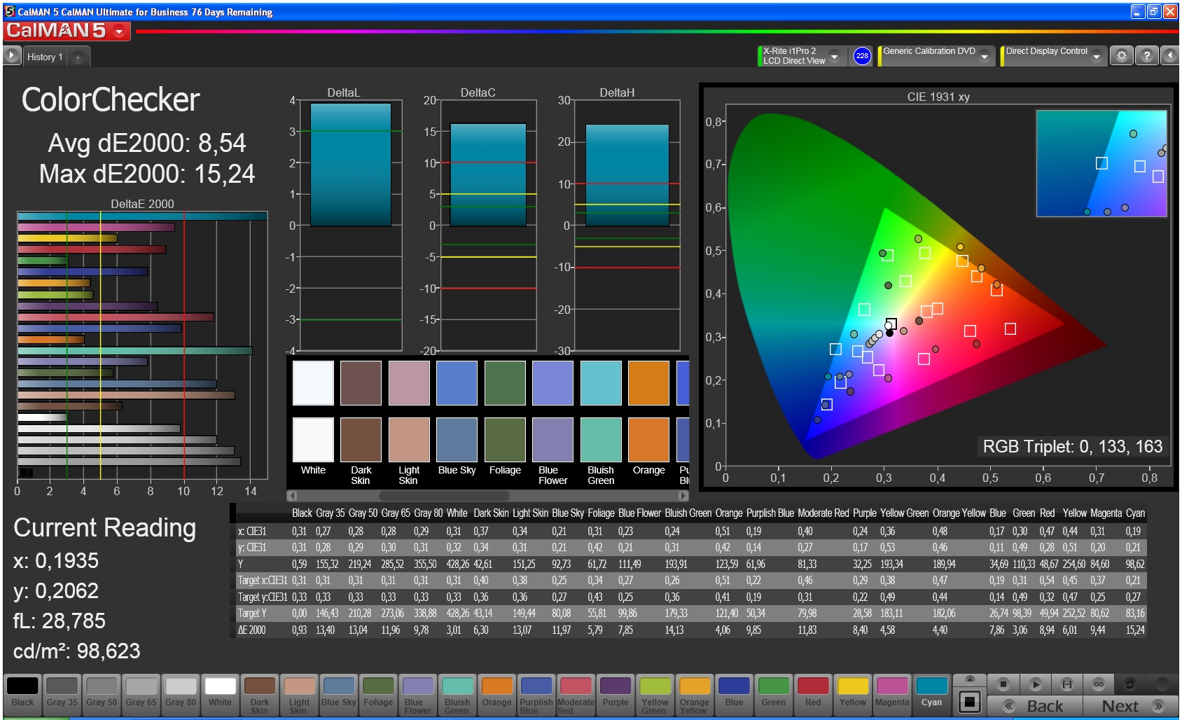 ΔE ColorChecker Calman: 8.54 | ∀{0.5-29.43 Ø4.78}