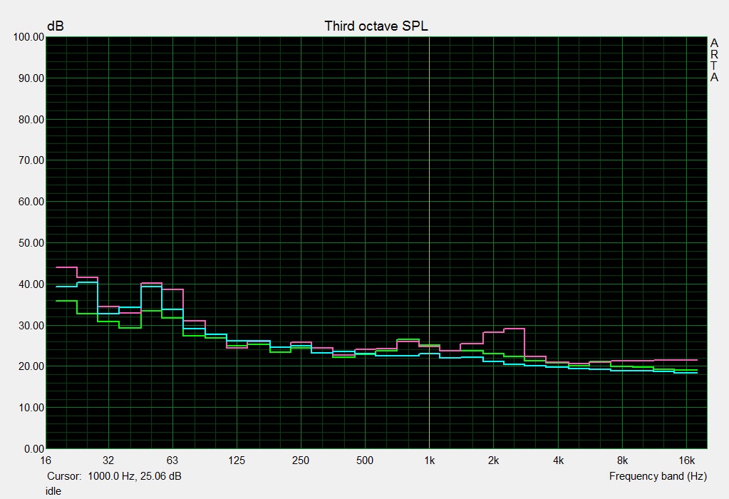 | Idle max * (dB) | 37 | 33 11% | 31.2 16% | 35 5% | 38 -3% |