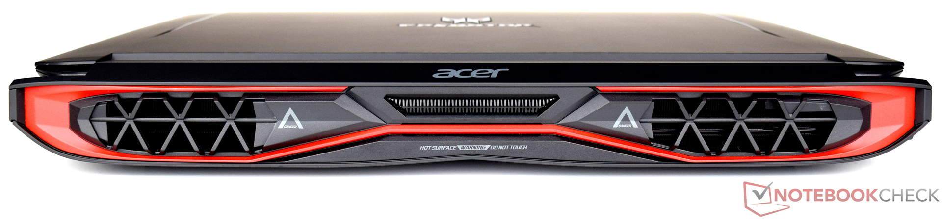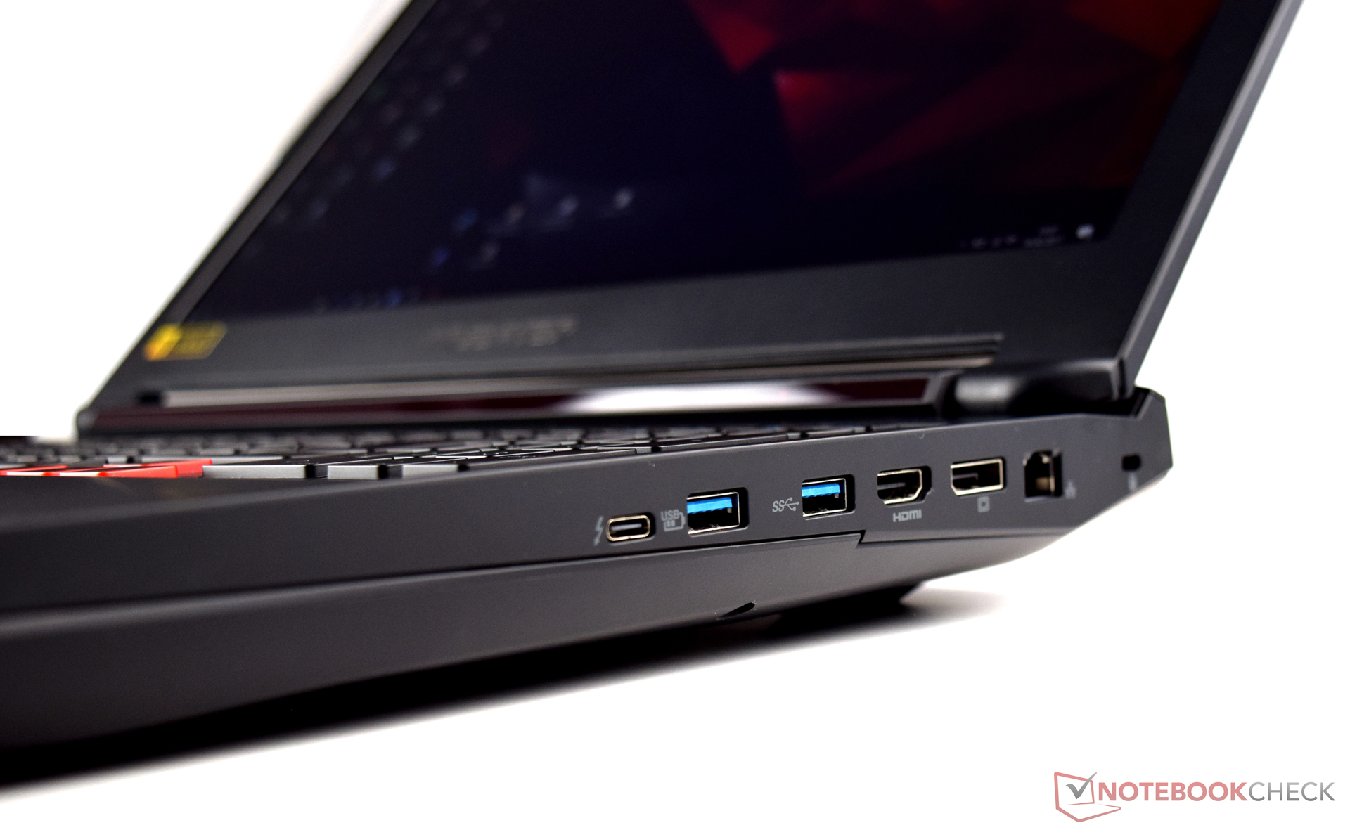 Die gebotenen Schnittstellen sind ausreichend und verteilen sich links und rechts an den Seiten. Der rückwärtige Bereich dient der Abluft, welche die drei Lüfter produzieren. Insgesamt bietet das Acer Predator 17 X 4x USB 3.0, wovon sich jeweils zwei links und rechts an den Seiten befinden. Zudem bietet Acer auch einen USB-Typ-C-Port mit Thunderbolt-Support. Externe Bildschirme können wahlweise über HDMI oder DisplayPort verbunden werden. Auf der rechten Seite ist zwischen den einzelnen Schnittstellen ausreichend Platz, wohingegen es auf der linken Seite etwas enger zugeht. Gut finden wir die Platzierung im hinteren Bereich. Somit bleibt genügend Platz, um mit der Maus zu agieren.