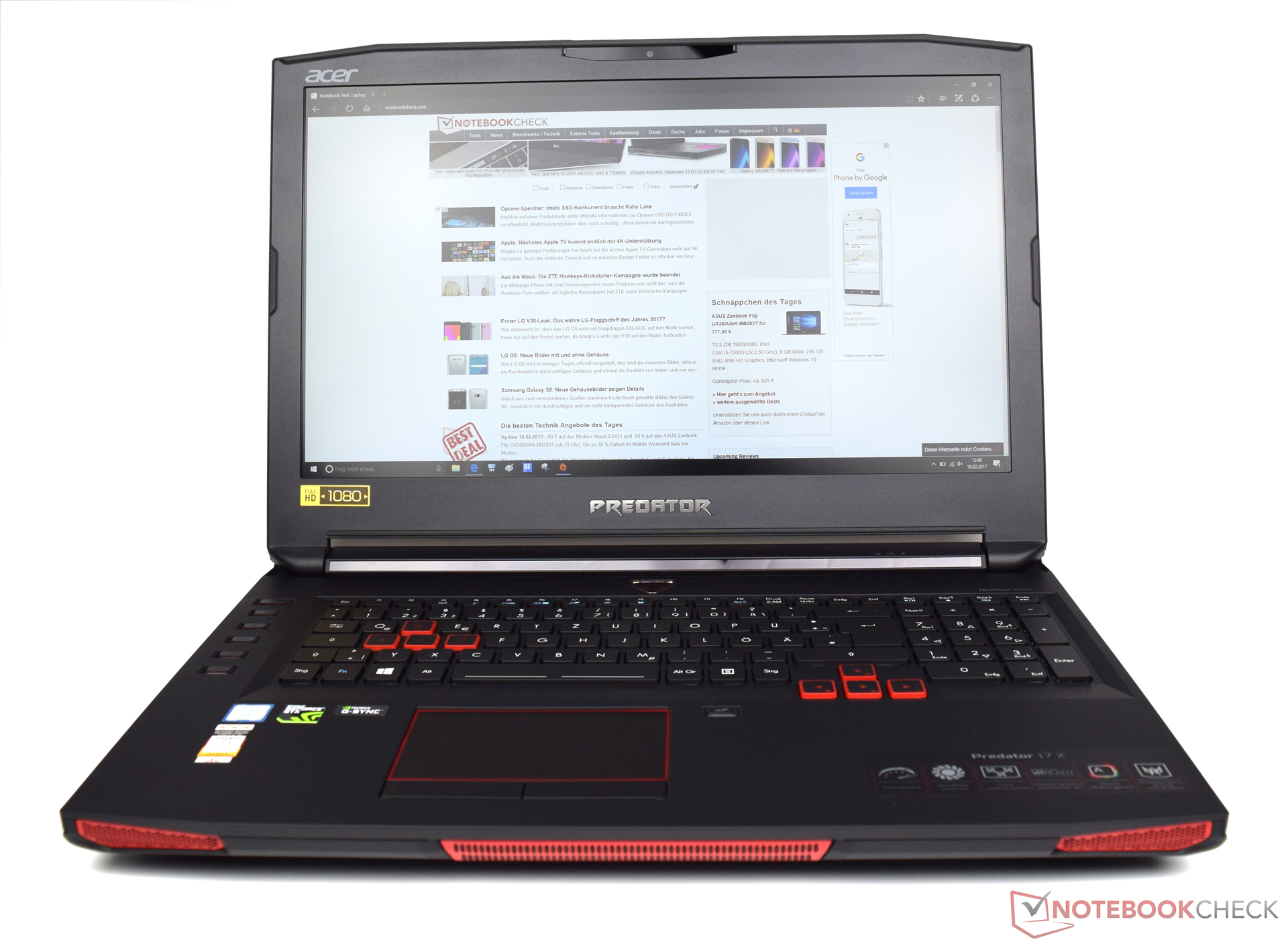 Nachdem Intel die Kaby-Lake-Prozessoren präsentierte, beerben diese nach und nach die Skylake-Modelle. Der Leistungszuwachs der neuen CPU-Generation ist zwar nicht dramatisch, aber in Hinblick auf die Leistungskrone bei den schnellsten Gaming-Geräten können ein paar MHz schon den Unterschied machen. Das Acer Predator 17 X GX-792-76DL ist mit einem sehr flotten Intel Core i7-7820HK ausgestattet. Mit 16 GB ist der Arbeitsspeicher für ein Gaming-Laptop zurzeit noch ausreichend. Das Wichtigste an einem Spielegerät ist jedoch die verbaute Grafikkarte. In unserem Testsample werkelt eine Nvidia GeForce GTX 1080 (Laptop), welche für ein sehr gutes Spielerlebnis sorgt. Der Bildschirm bietet Full-HD und unterstützt Nvidia‘s G-Sync Technologie. Als Massenspeicher dient unserem Testgerät eine Kombination aus SSD und HDD.