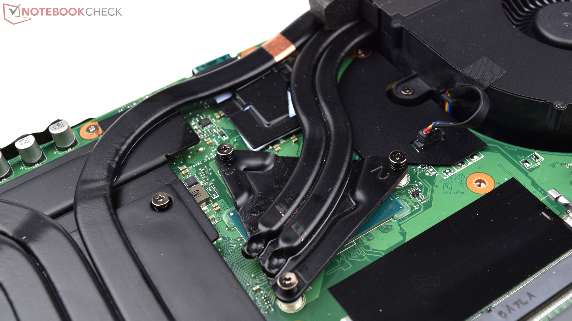 Die Base des Acer Predator 17 X bietet unterseitig eine Wartungsklappe, welche eher für ein Systemupgrade dient. An die Lüfter gelangt man vor dort aus nicht, dafür muss die komplette Unterseite der Base demontiert werden. Dies gelingt auch ohne Probleme, nachdem eine Vielzahl von Schauben entfernt worden sind. Die insgesamt drei Lüfter lassen sich problemlos mit einem Pinsel reinigen. Was uns etwas gestört hat, ist die Platzierung der zwei bereits belegten Arbeitsspeicher-Module. Diese befinden sich auf der anderen Seite des Mainboards in Höhe der beiden noch freien Steckplätze. So muss beim RAM-Upgrade auf die maximalen 64 GB das Mainboard ausgebaut werden.