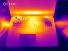 Immerhin hat die hohe Lautstärke des Kühlsystems auch etwas Gutes - das Gerät bleibt selbst unter hoher Laste vergleichsweise kühl. Vor allem die Oberseite bleibt sogar beim Gaming durchgehend unter 40 °C, das kann nur das HP Omen 17 noch toppen.