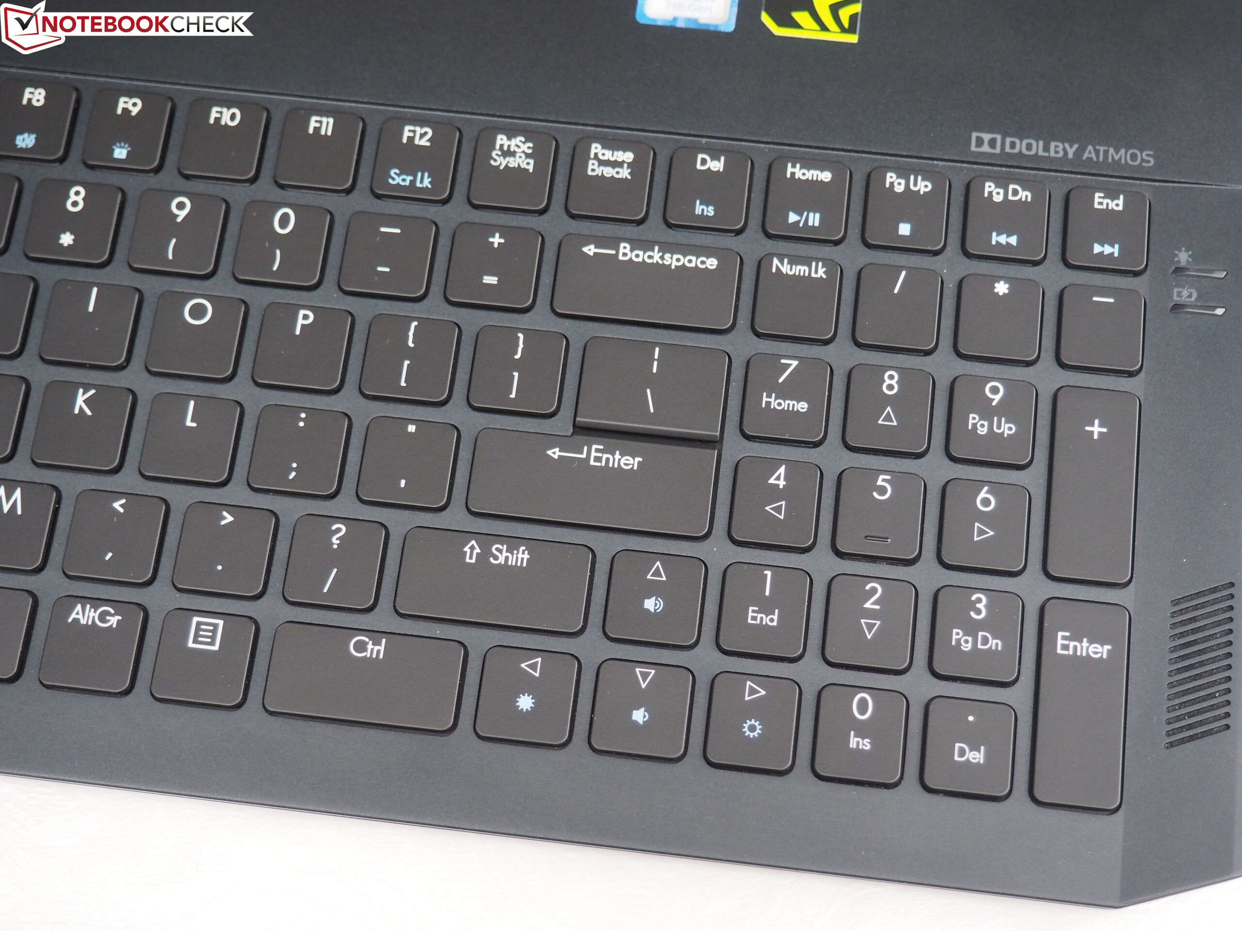 Rein ergonomisch sind beide Geräte nicht optimal. Durch die fehlende Handballenauflage werden die Hände – geringe Bauhöhe hin oder her – etwas abgewinkelt. Nachbessern könnte Acer auch bei der Tastenbeschriftung. Während die Hauptfunktionen bei aktiver RGB-Beleuchtung gut sichtbar sind, gehen die per Fn-Taste ausgelösten Sekundärfunktionen wegen der blaugrauen (unbeleuchteten) Schrift schnell unter.