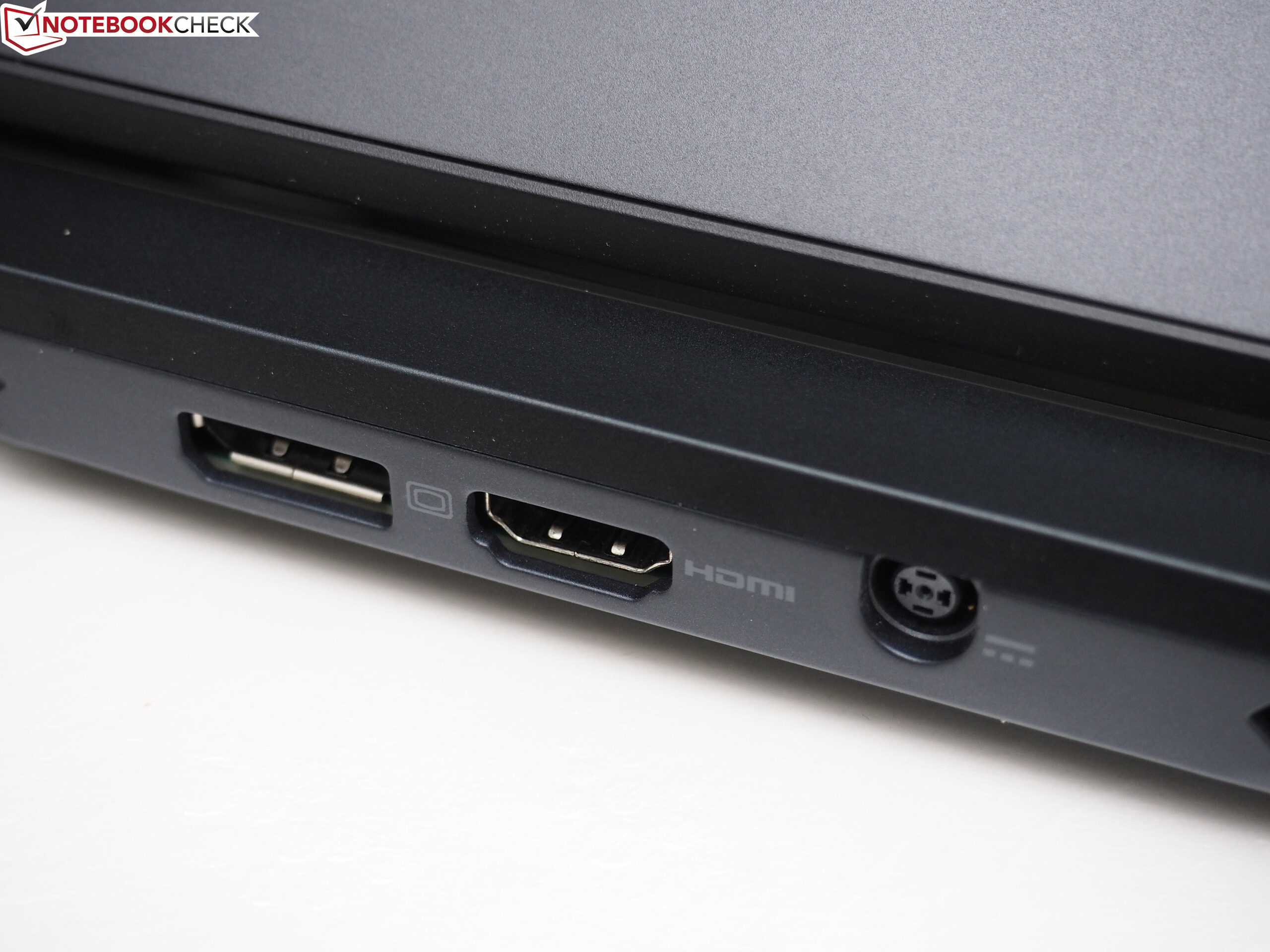Größtes Highlight ist der Thunderbolt-3-Port (Typ C), der auch USB 3.1 Gen2 und DisplayPort beherrscht. Zusammen mit dem HDMI-2.0-Port (4K @60 Hz) und dem normal dimensionierten DisplayPort, welche sich an der Rückseite tummeln, kann der 15-Zöller bis zu drei externe Displays gleichzeitig ansteuern. Minuspunkte gibt es lediglich für die Abwesenheit eines Cardreaders, was allerdings auch für das (etwas schlechter bestückte) ROG Zephyrus gilt.
