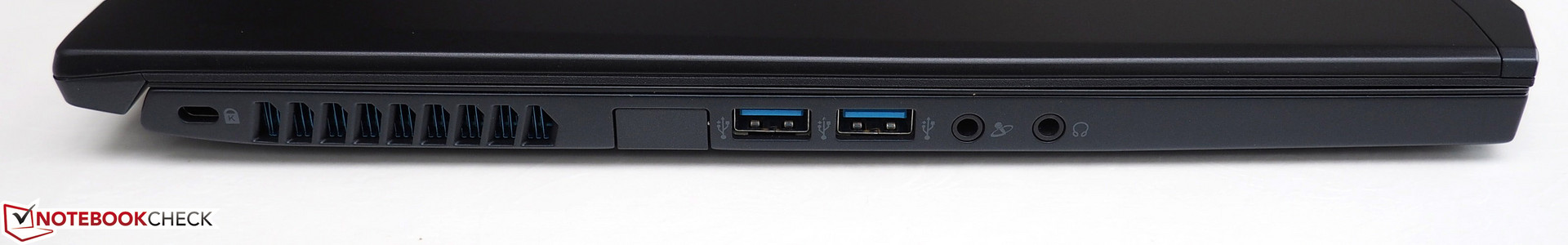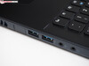 Die Schnittstellen werden dem High-End-Anspruch über weite Strecken gerecht. Zwar ist es bei der Nutzung einer externen Maus etwas suboptimal, dass die seitlichen Anschlüsse aufgrund der Lüfteröffnungen (das Notebook bläst nach hinten und zur Seite) recht mittig platziert sind, ansonsten liefert das Triton 700 jedoch eine gute Vorstellung ab. Vier USB-Ports vom Typ A (3x 3.0 und ein im Gehäuse versenkter 2.0-Port) dürften die meisten Käufer ebenso zufriedenstellen wie zwei 3,5-mm-Buchsen für Headsets und Mikrofone. Dazu gesellen sich ein RJ45-Port und eine Öffnung für Kensington Locks.