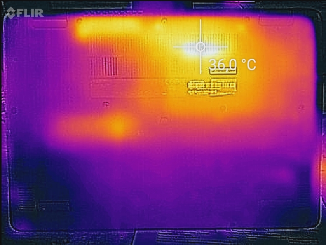 (±) Auf der Unterseite messen wir eine maximalen Wert von 42.5 °C (im Vergleich zum Durchschnitt von 36.8 °C).