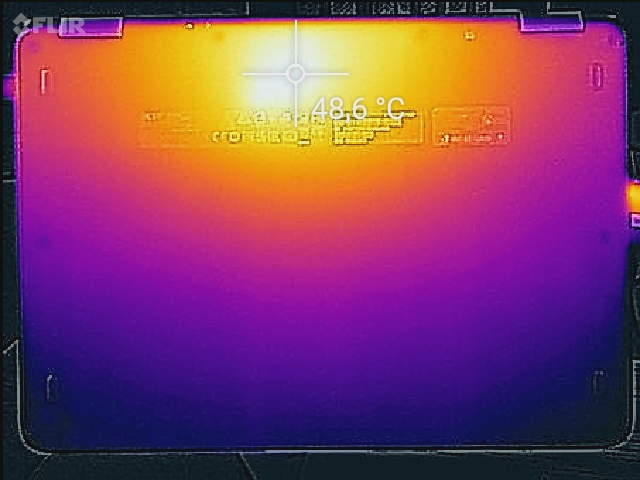 (±) Auf der Unterseite messen wir eine maximalen Wert von 45 °C (im Vergleich zum Durchschnitt von 39.3 °C).