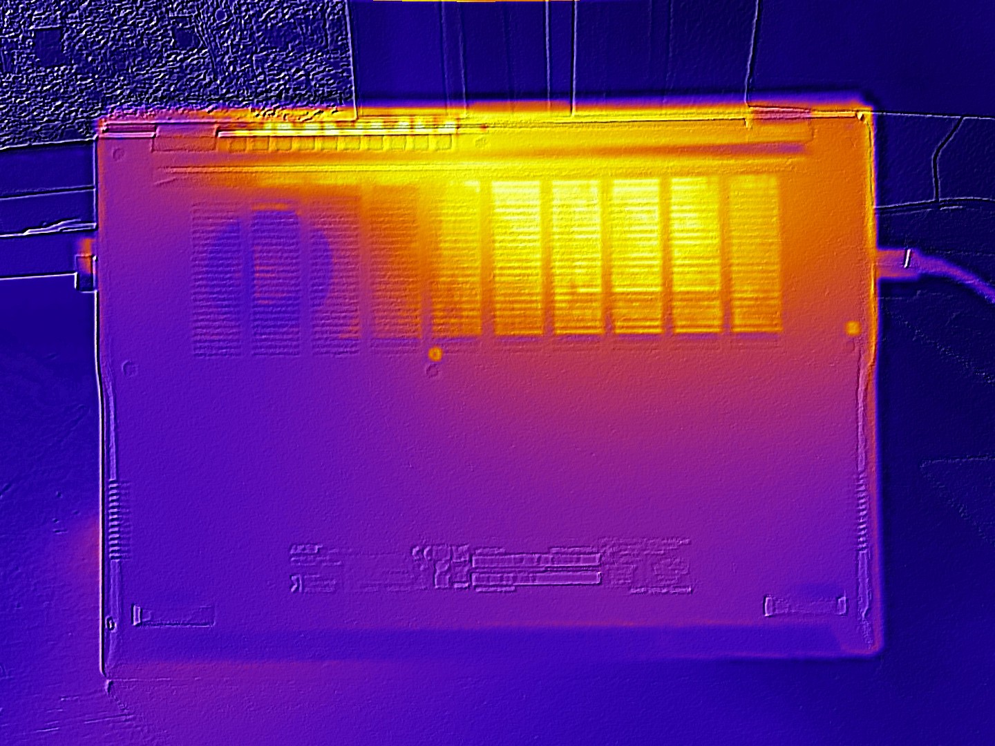 (±) Auf der Unterseite messen wir eine maximalen Wert von 45 °C (im Vergleich zum Durchschnitt von 39.3 °C).
