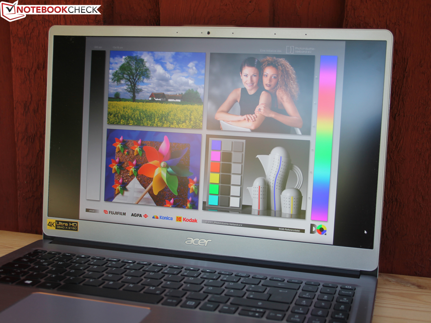 Die Abdeckung von sRGB ist das Vorzeige-Merkmal des 4K-Swift-3 schlechthin. Keines der Vergleichsgeräte kann das bieten. Im gleichen Zuge ist die annähernde Abdeckung von AdobeRGB (88 %) ebenfalls ein Meilenstein. Die Konkurrenten dümpeln hier bei knapp 40 % herum.