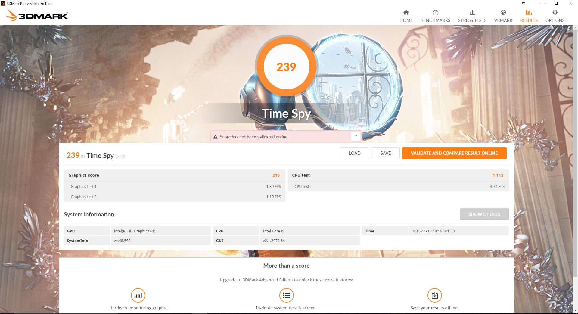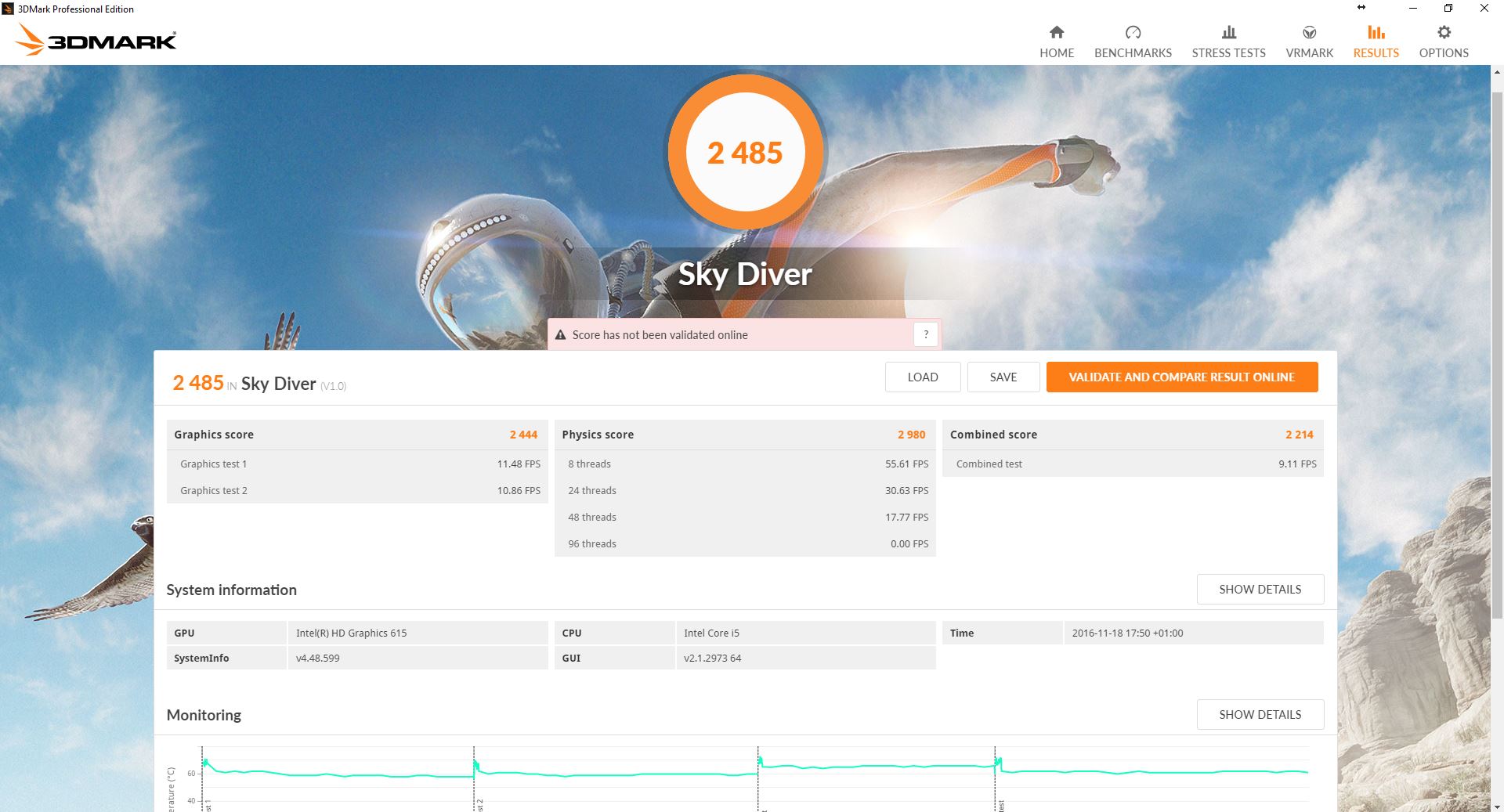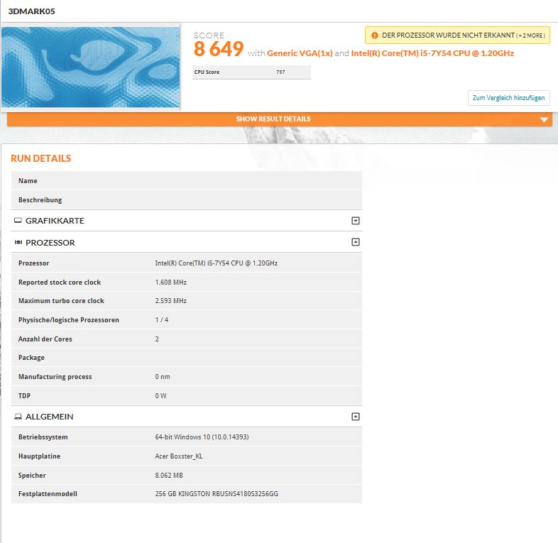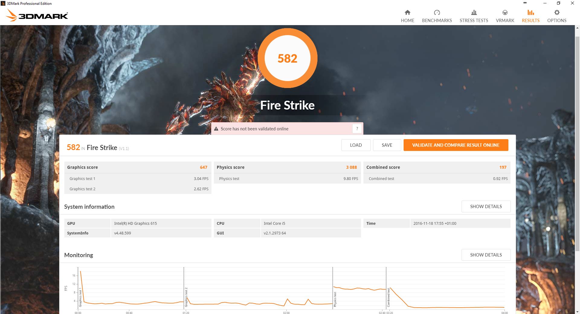 | 3DMark Fire Strike Score | 582 Punkte | |